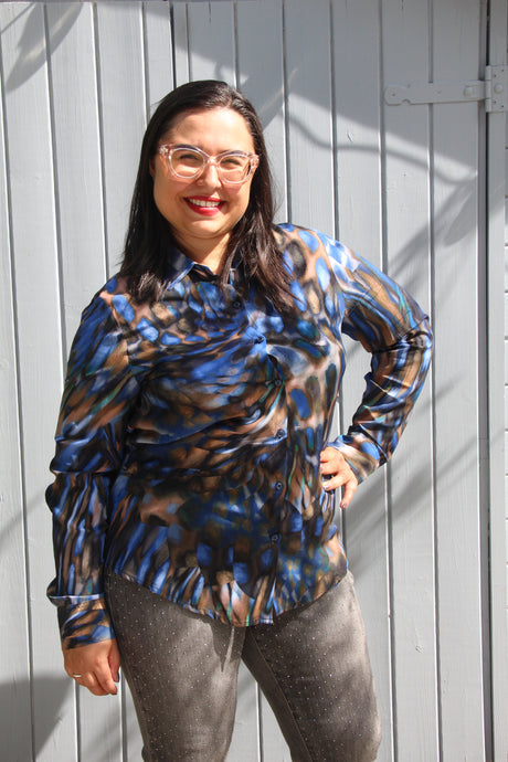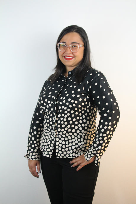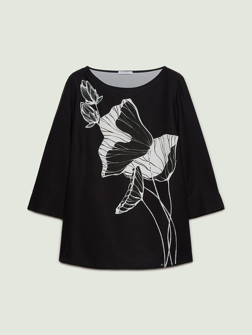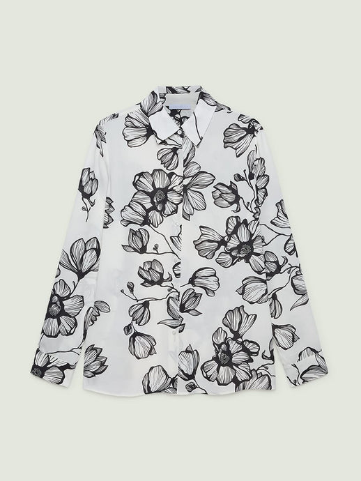 Camicia bianca fiori neri stilizzati vestibilità curvy