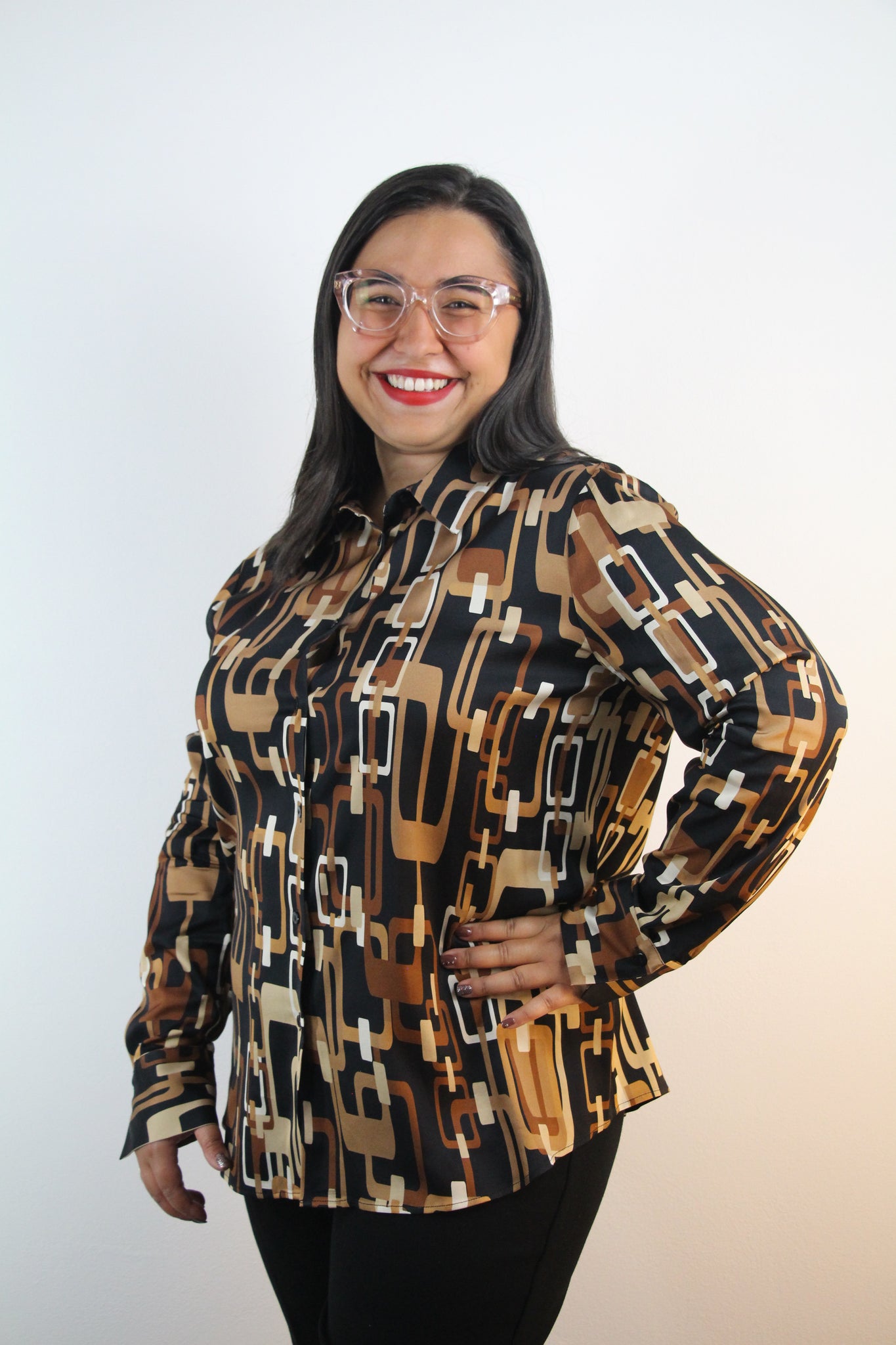 Camicia fantasia tessuto lucido fantasia geometrica.